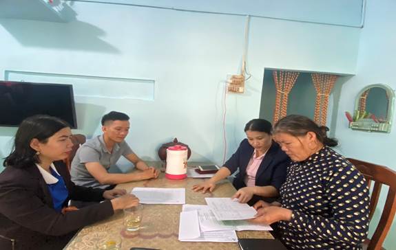 Ảnh: Cán bộ Phòng giao dịch NHCSXH Bình Sơn thăm gia đình vay chương trình giải quyết việc làm tại thôn Sơn Trà, xã Vạn Tường