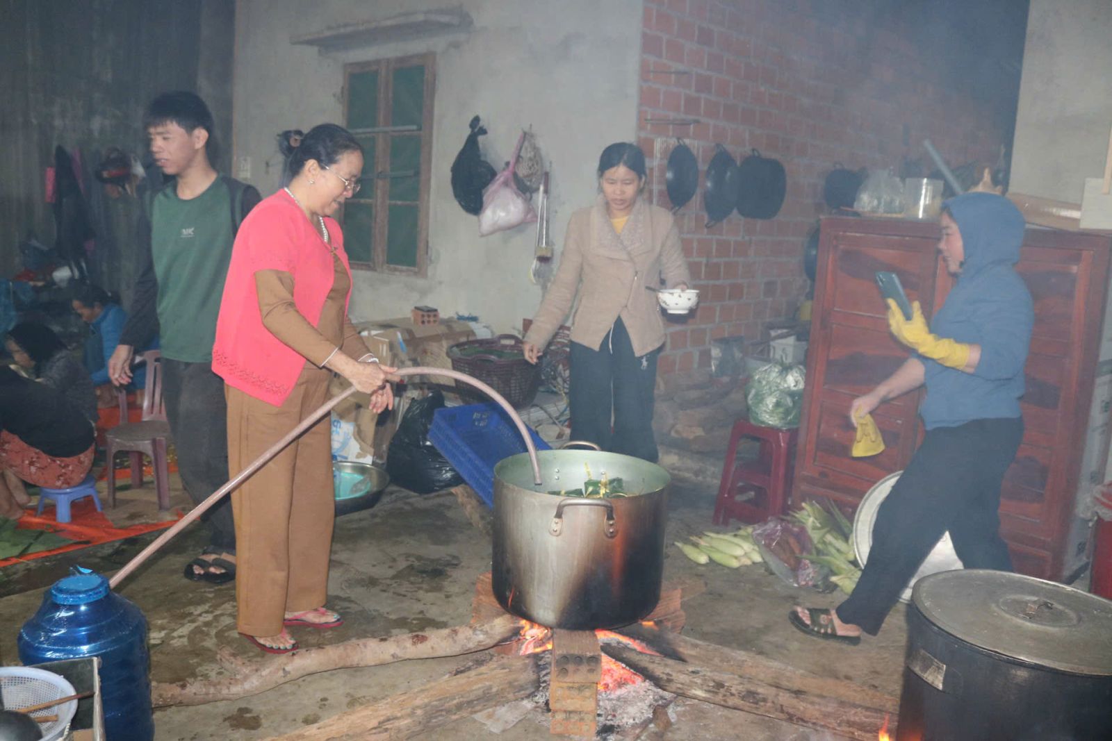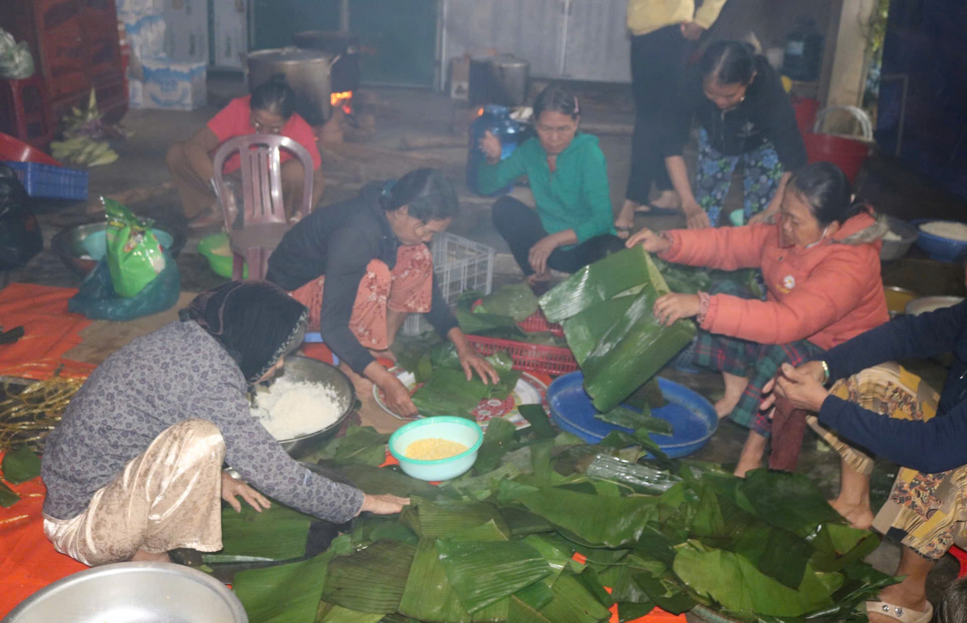 Bà Nguyễn Thị Thủy chia sẻ: "Ở thời điểm này tôi nghĩ đồ ăn, thức uống là thứ cần thiết nhất với bà con vùng bị ngập lụt. Cho nên từ chiều hôm qua, chúng tôi đã bàn với nhau và quyết định sẽ gói bánh chưng, gửi cho bà con. Nhờ sự chung tay, đồng lòng của người dân trong và ngoài thôn, chỉ từ chiều hôm qua (ngày 20/11) đến sáng nay (ngày 21/11), bà con đã chuẩn bị gói và nấu được khoảng 500 chiếc bánh. Tối nay, mọi người thay phiên nhau thức xuyên đêm để hoàn thành chỉ tiêu hơn 1.000 chiếc bánh chưng.