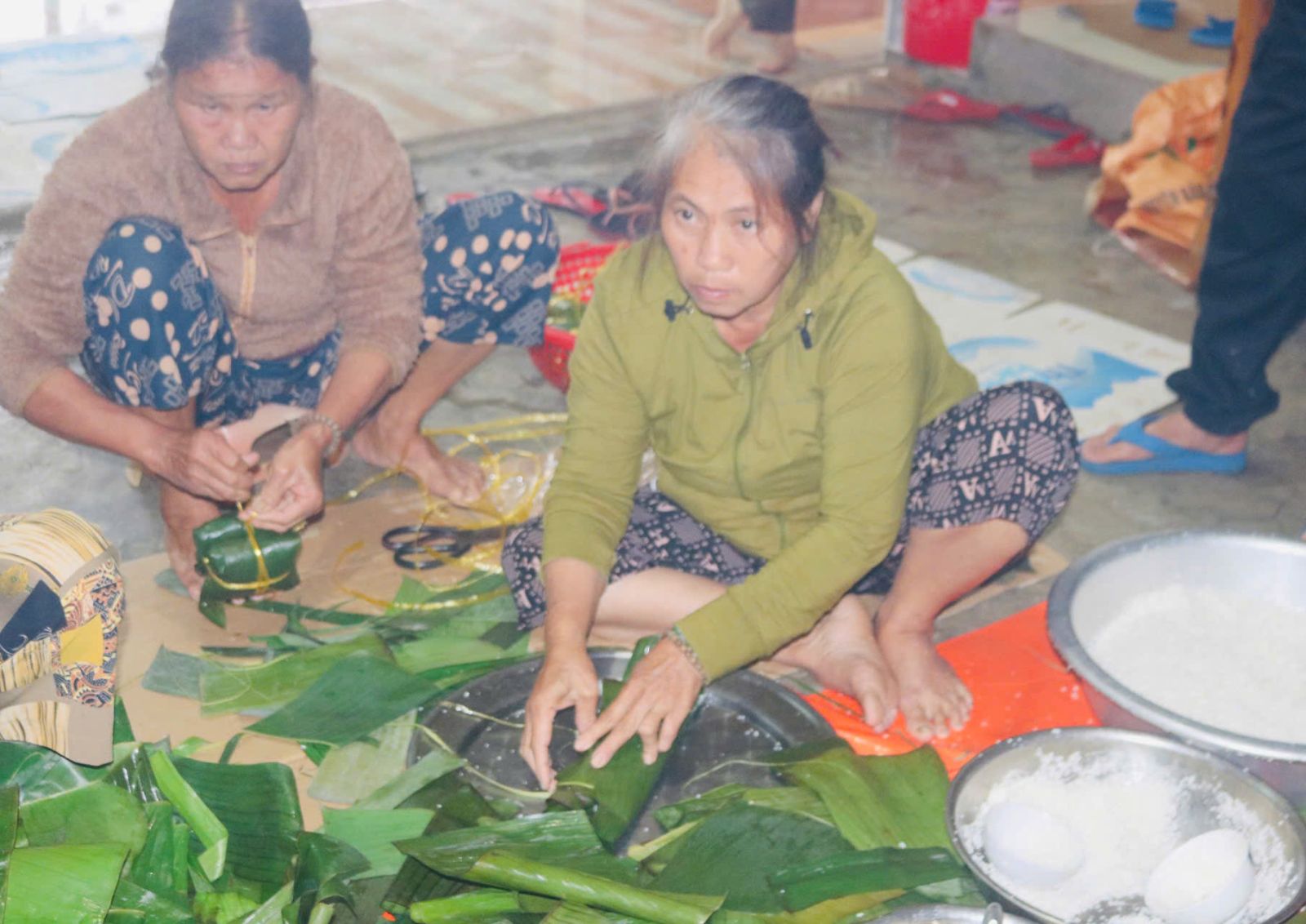 Người dân xã Vạn Tường gói hơn 1.000 bánh chưng cùng nhiều nhu yếu phẩm ủng hộ bà con vùng lũ