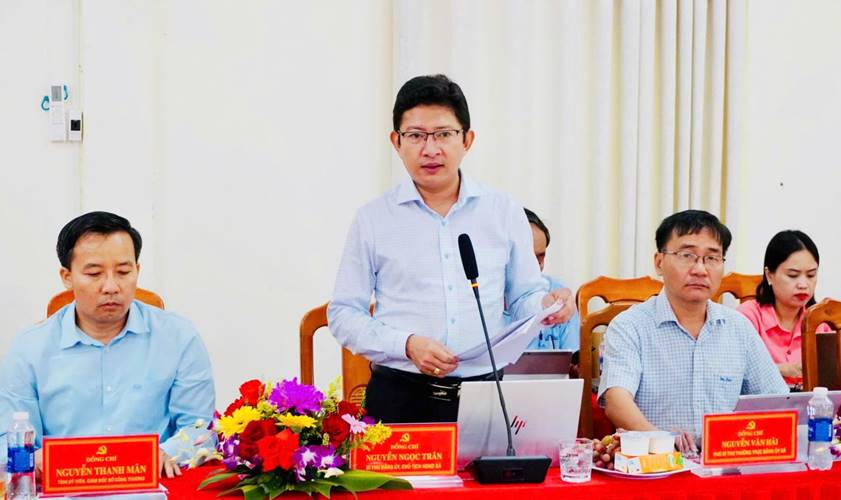 Đồng chí Nguyễn Ngọc Trân Bí thư Đảng uỷ, Chủ tịch HĐND xã báo cáo tình hình địa phương