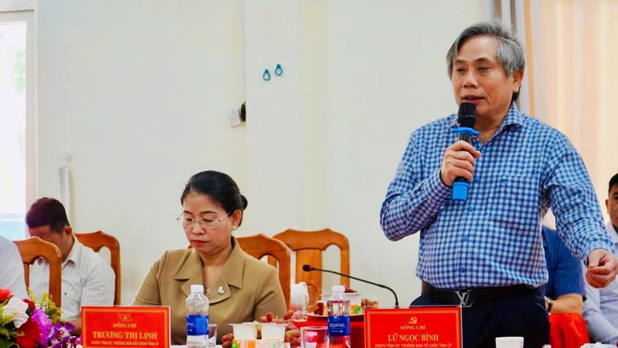 Ủy viên Ban Thường vụ Tỉnh ủy, Trưởng ban Tổ chức Tỉnh ủy Lữ Ngọc Bình phát biểu tại buổi làm việc.