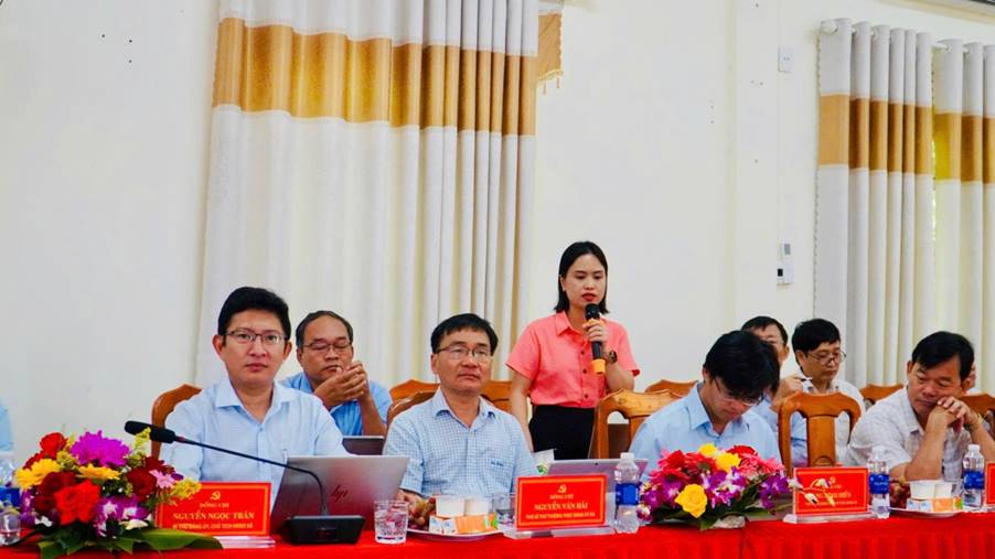 Đồng chí Vũ Thị Kiều Vân, Trưởng phòng Kinh tế xã Vạn Tường báo cáo tình hình hoạt động của phòng