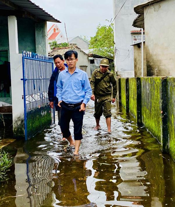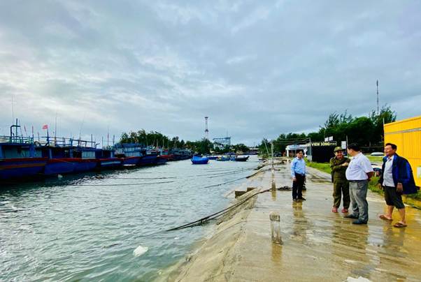 Chủ tịch UBND xã Vạn Tường kiểm tra thực tế điểm ngập úng và an toàn neo đậu tàu thuyền ở thôn Tuyết Diêm 2
