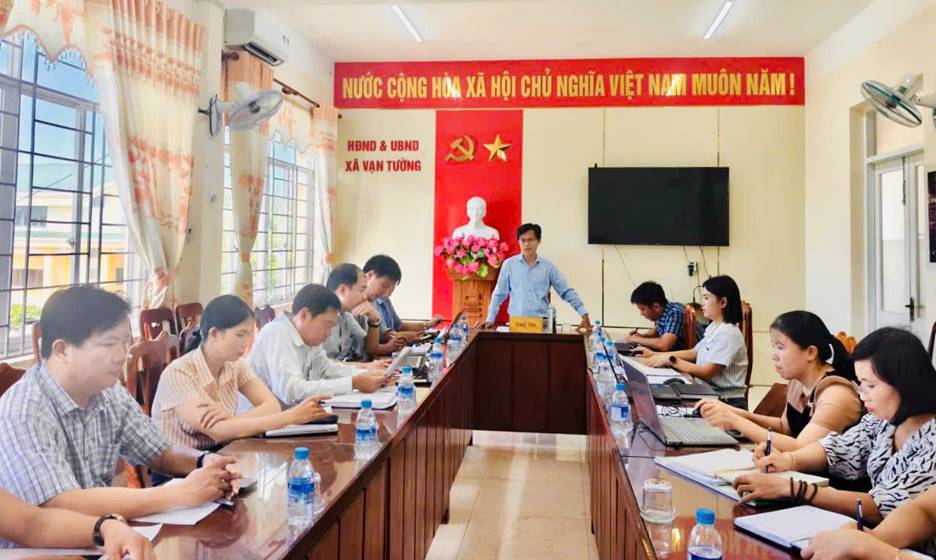 Cuộc họp do đồng chí Ung Đình Hiền, Chủ tịch UBND xã Vạn Tường, chủ trì, đồng chí Lữ Thế Lâm, Phó Chủ tịch UBND xã và lãnh đạo, chuyên viên Văn phòng HĐND và UBND, Trung tâm phục vụ hành chính công và các Phòng Kinh tế, Phòng Văn hoá-xã hội.