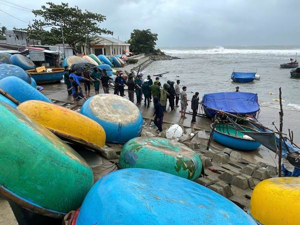Thúng được đưa vào bờ an toàn trước khi bão vào