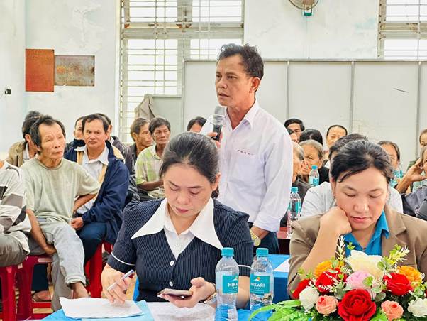 Đồng chí Nguyễn Ngọc Trân, Bí thư Đảng ủy, Chủ tịch HĐND xã, dự đại đoàn kết tại thôn Tuyết Diêm 3