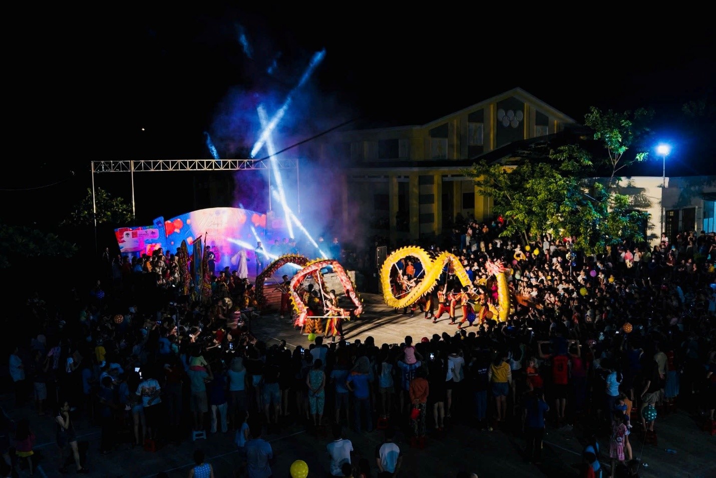 Bên cạnh đó, các em nhỏ còn được thưởng thức một đêm hội lung linh với các tiết mục văn nghệ đặc sắc, màn múa lân – rồng sôi động và màn pháo hoa rực rỡ, tạo nên một không gian Trung thu ngập tràn niềm vui và hạnh phúc.